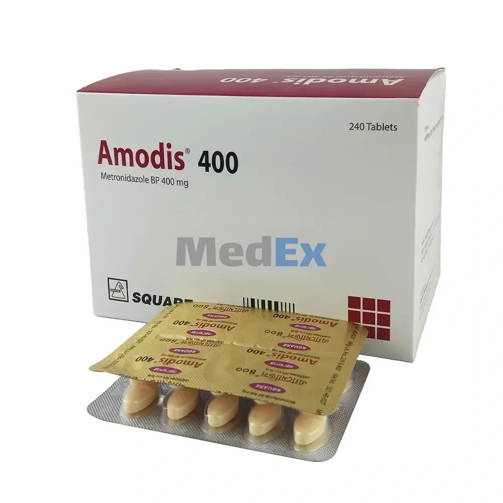 Amodis 400 mg Tablet is an antibiotic medication that performs its action by preventing the growth of bacterias and parasites.