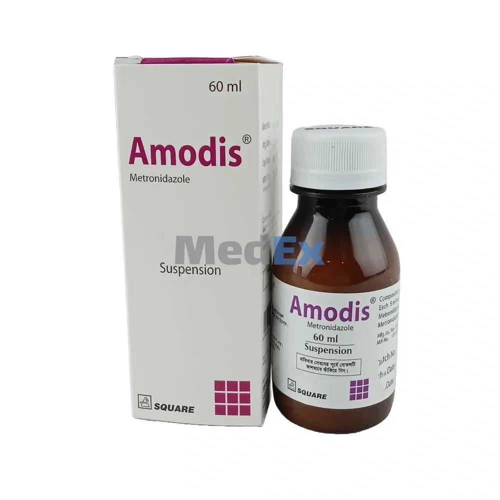 - Amodis 200 mg/5 ml Suspension treats infections caused by bacteria and parasites.