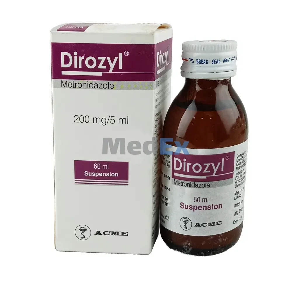 Dirozyl 200 mg/5 ml Suspension is an antibiotic medication that performs its action by preventing the growth of bacterias and parasites.