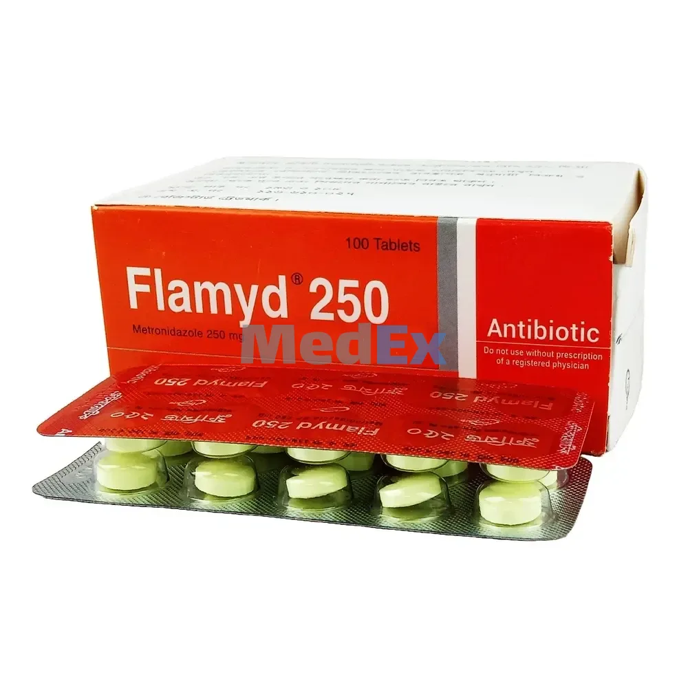 - Flamyd 250 mg Tablet treats infections caused by bacteria and parasites.