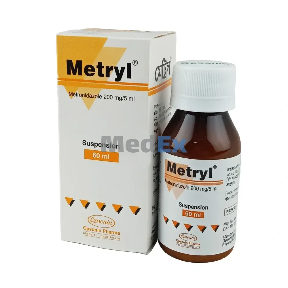 - Metryl 200 mg/5 ml Suspension treats infections caused by bacteria and parasites.