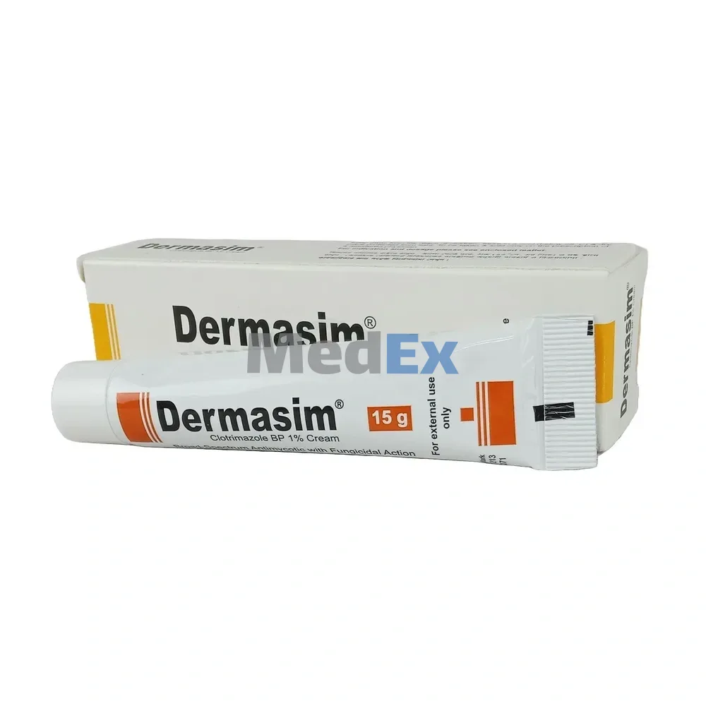 Dermasim is a broad-spectrum antifungal agent that is used for the treatment of dermal infections caused by various species of pathogenic dermatophytes, yeasts, moulds and bacteroids. Dermasim is also active against certain gram-positive bacteria especially Staphylococci and Tricomonas. Like other imidazoles, Dermasim alters the permeability of fungal cell walls by interfering with cell wall lipids. At fungi static levels the main effect is inhibition of ergosterol synthesis but at higher concentrations there is an additional mechanism of membrane damage unrelated to sterol synthesis.