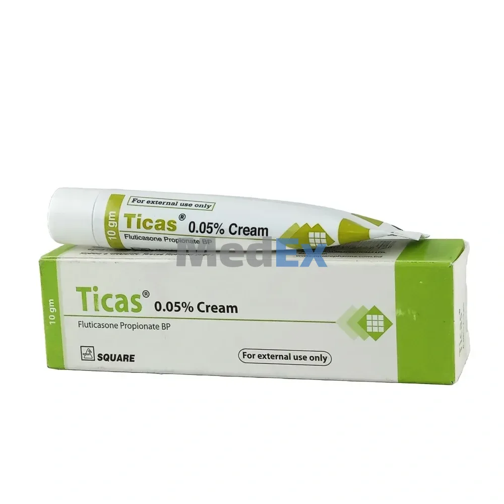 Ticas has a very low propensity for systemic absorption, nevertheless, prolonged application of high doses to large areas of the body surface, especially in infants and small children might lead to adrenal suppression. Children may absorb proportionally larger amounts of topical corticosteroids and thus be more susceptible to systemic toxicity. The face, more than other areas of the body, may exhibit atropic changes after prolonged treatment with potent topical corticosteroids. This must be borne in mind when treating severe eczema. Appropriate antimicrobial therapy should be used whenever treating inflammatory lesions which have become infected. Any spread of infection requires withdrawal of topical corticosteroid therapy and systemic administration of antimicrobial agents. Bacterial infection is encouraged by the warm, moist conditions induced by occlusive dressing, and so the skin should be cleansed before a fresh dressing is applied.