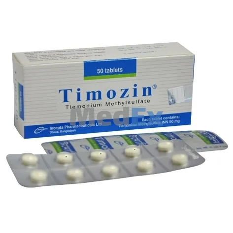 টিমোজিন একটি মাংসপেশীর খিঁচুনীরোধী ঔষধ যা পরিপাকনালী, পিত্ততন্ত্র, মূত্রাশয় ও জরায়ুর পেশীর সংকোচন কমায়। ইহা পরিপাকনালী ও পিত্ততন্ত্রের অকার্যকারিতা সংক্রান্ত ব্যথার লক্ষণ ভিত্তিক চিকিৎসায় ব্যবহৃত হয়। এছাড়াও এটি মূত্রনালী ও স্ত্রী জননাঙ্গ সংক্রান্ত রোগের সংকোচন ও ব্যথার চিকিৎসায় নির্দেশিত।