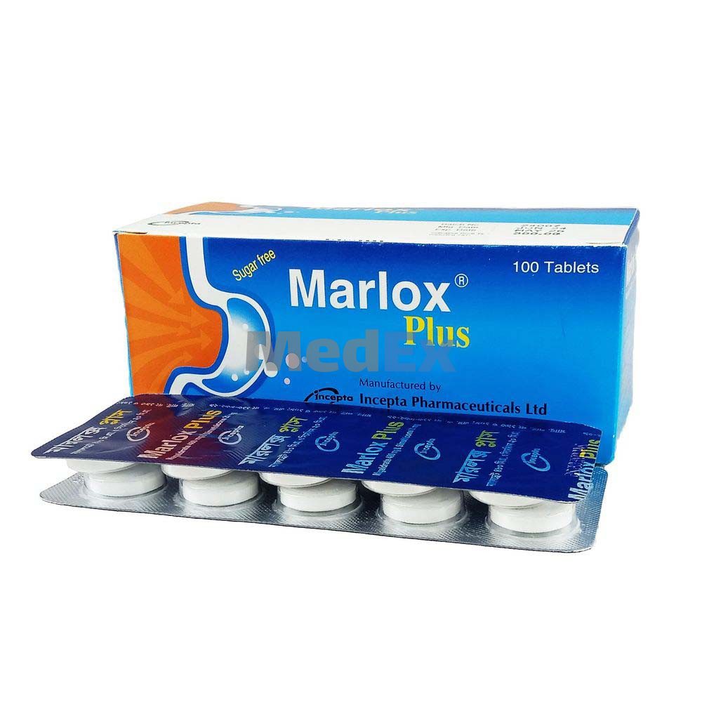 This is a combination of magaldrate and simethicone. Magaldrate (magnesium aluminium compound i.e. Hydroxymagnesium Aluminate), which neutralizes gastric acid extraordinarily quickly without raising the pH above 5-6. It also decreases the activity of pepsin in gastric secretion. Besides this, simethicone, the another component of Marlox Plus, enables the gas buble to coalesce and give relief from flatulence.