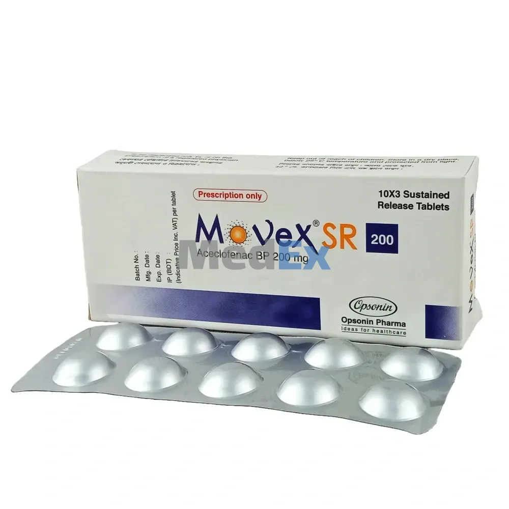 Movex SR is a non-steroidal drug with anti-inflammatory and analgesic properties. It is a potent inhibitor of the enzyme cyclooxygenase, which is involved in the production of prostaglandin. After oral administration, it is rapidly and completely absorbed an unchanged drug.