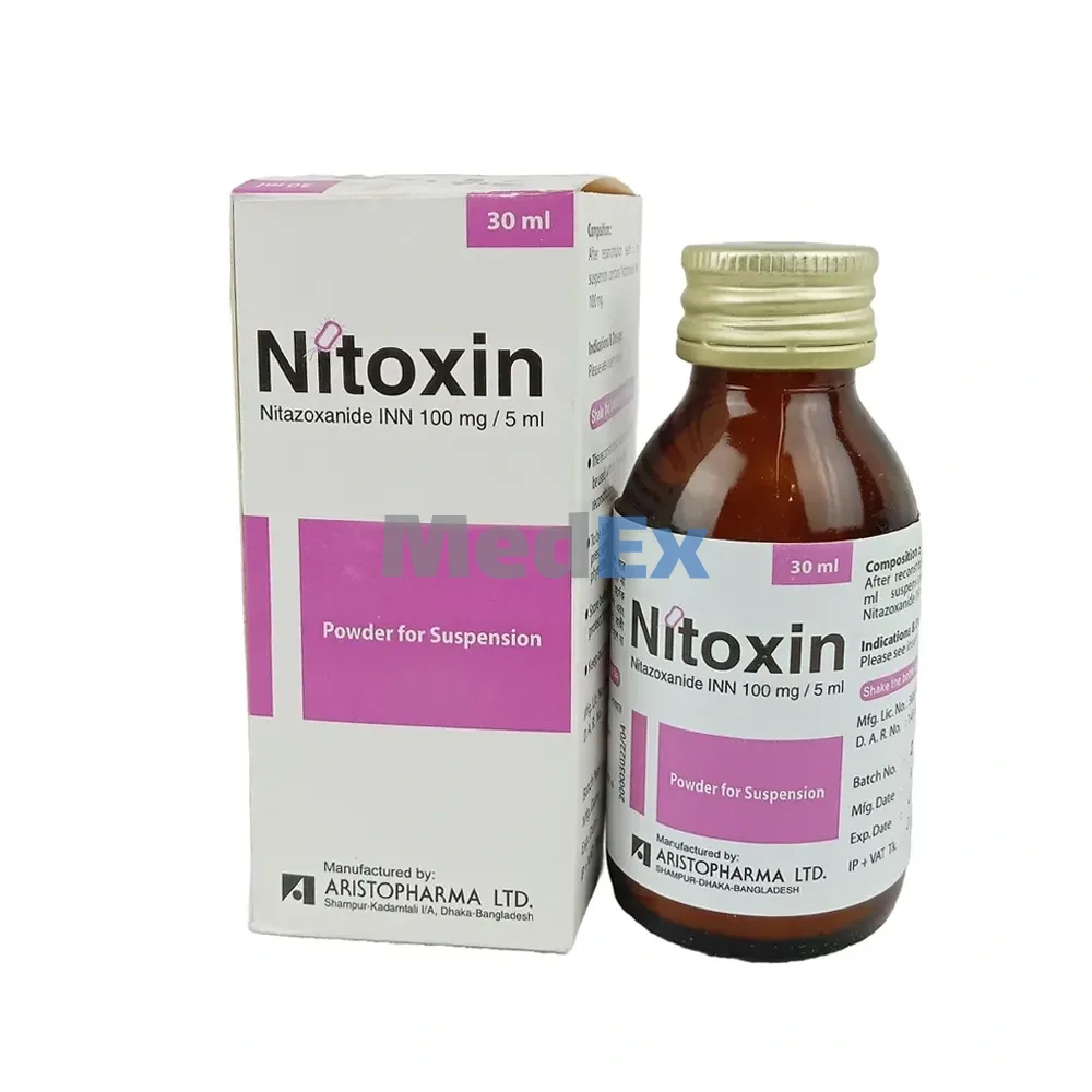 নিটক্সিন ক্রিপ্টোস্পোরিডিয়াম পারভাম, জিয়ার্ডিয়া ল্যাম্বলিয়া এবং এন্টামিবা হিস্টোলাইটিকা দ্বারা সৃষ্ট ডায়রিয়ার চিকিৎসায় নির্দেশিত।