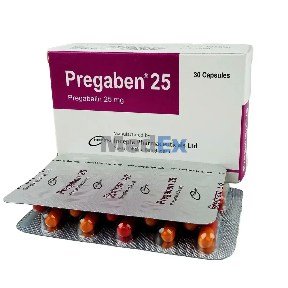 Pregaben 25 mg Capsule is an anticonvulsant and is considered to be the first-line of treatment for neurotic pain, shingles, seizures and fibromyalgia.