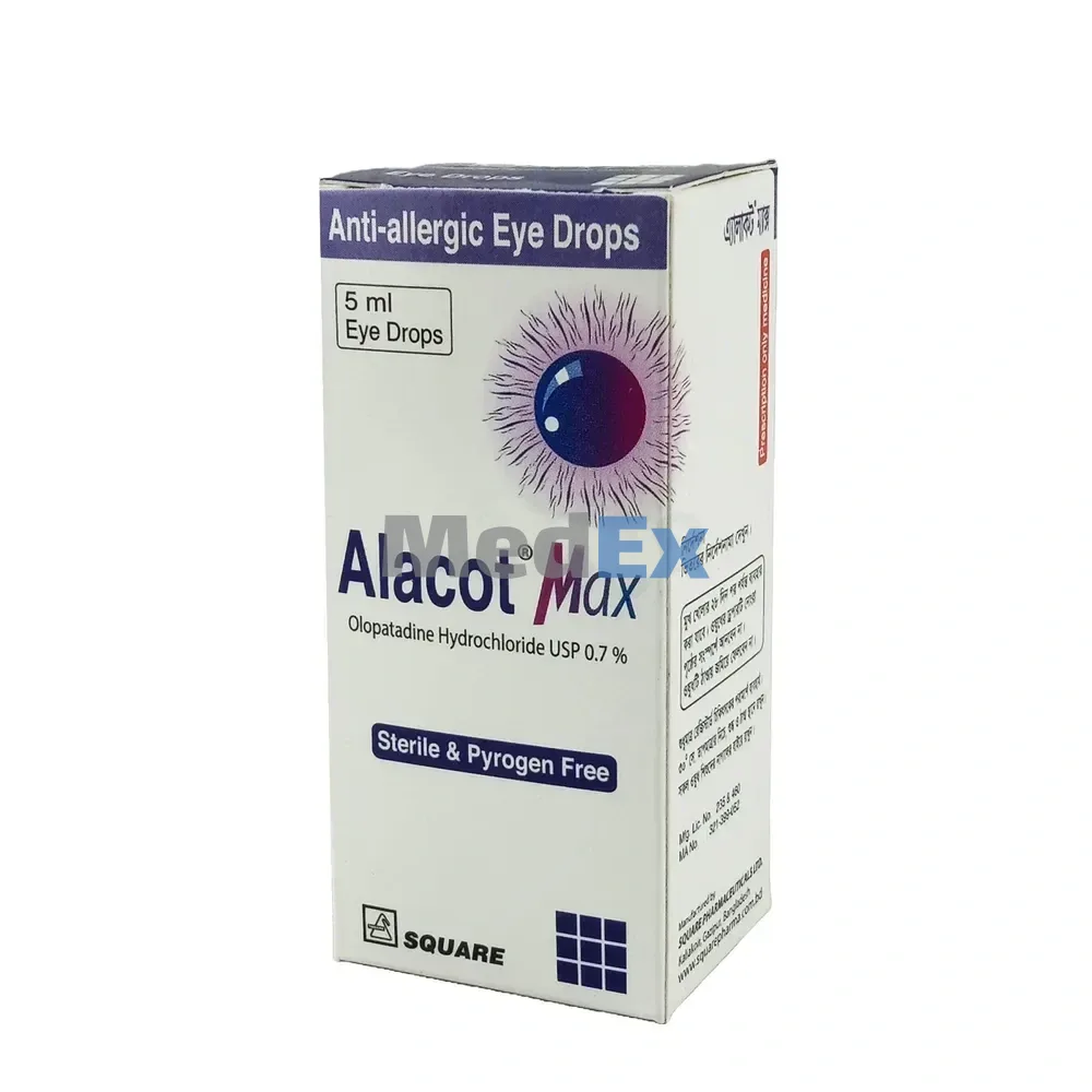 Alacot Max eye drops is indicated for the treatment of signs and symptoms (itchy, watery, red and swollen eyes and/or eyelids) of allergic conjunctivitis including vernal keratoconjunctivitis, vernal keratitis, blepharitis, blepharoconjunctivitis and giant papillary conjunctivitis.