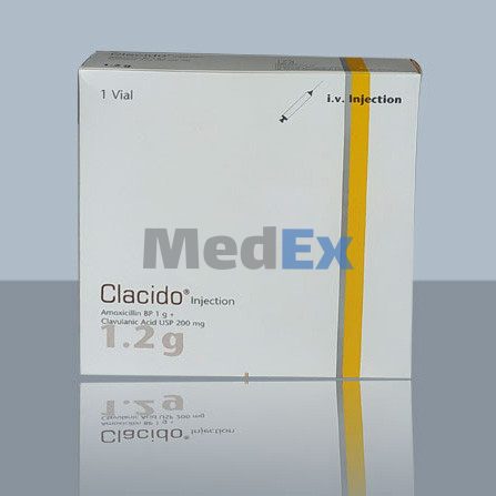 - 1.2 gm Injection: Each vial contains sterile mixture of Amoxicillin Sodium BP (equivalent to Amoxicillin 1 gm) and Clavulanate Potassium USP (equivalent to Clavulanic Acid 200 mg).