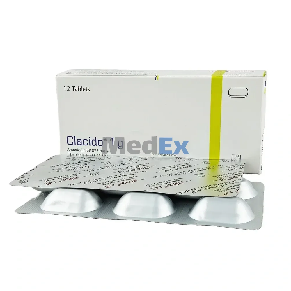 - 1 gm tablet: Each film coated tablet contains Amoxicillin 875 mg as Amoxicillin Trihydrate BP and Clavulanic Acid 125 mg Diluted Potassium Clavulanate BP.