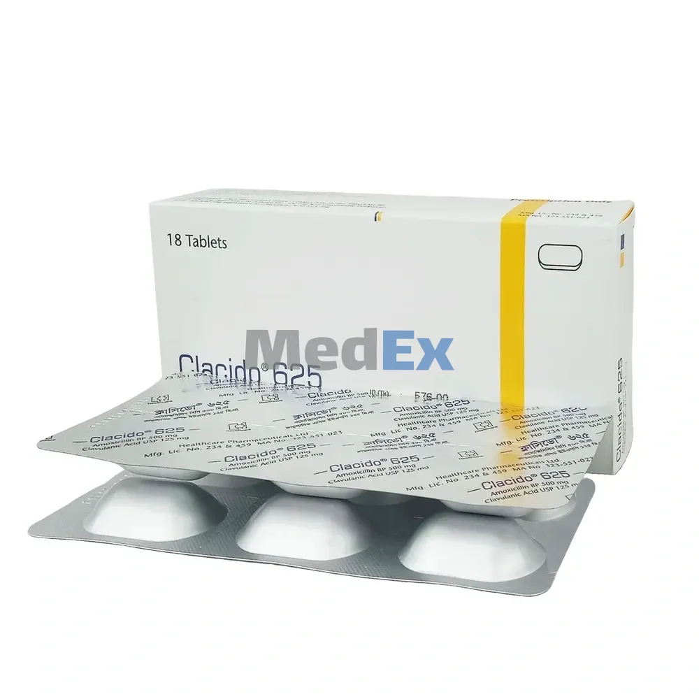 - 625 mg tablet: Each film coated tablet contains Amoxicillin 500 mg as Amoxicillin Trihydrate BP and Clavulanic Acid 125 mg as Diluted Potassium Clavulanate BP.