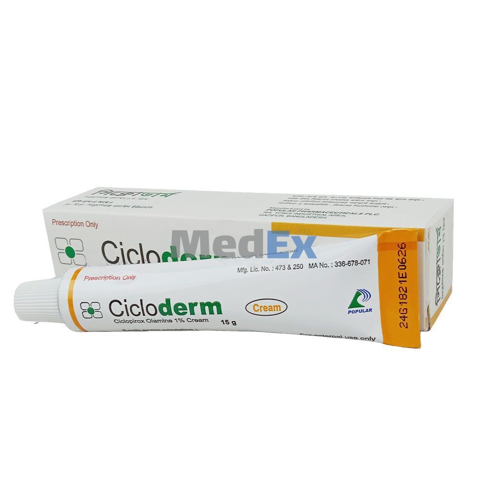 Cicloderm Cream is indicated for the topical treatment of the following dermal infections: Tinea pedis, Tinea cruris and Tinea corporis due to Trichophyton rubrum, Trichophyton mentagrophytes, Epidermophyton floccosum and Microsporum canis, candidiasis (moniliasis) due to Candida albicans, and Tinea (pityriasis) versicolor due to Malassezia furfur. Cicloderm Cream is also highly effective against some gram negative & some gram-positive bacteria. Owing to its anti-inflammatory effects, Cicloderm alone is sufficient to treat mild to moderate inflammatory fungal infections.