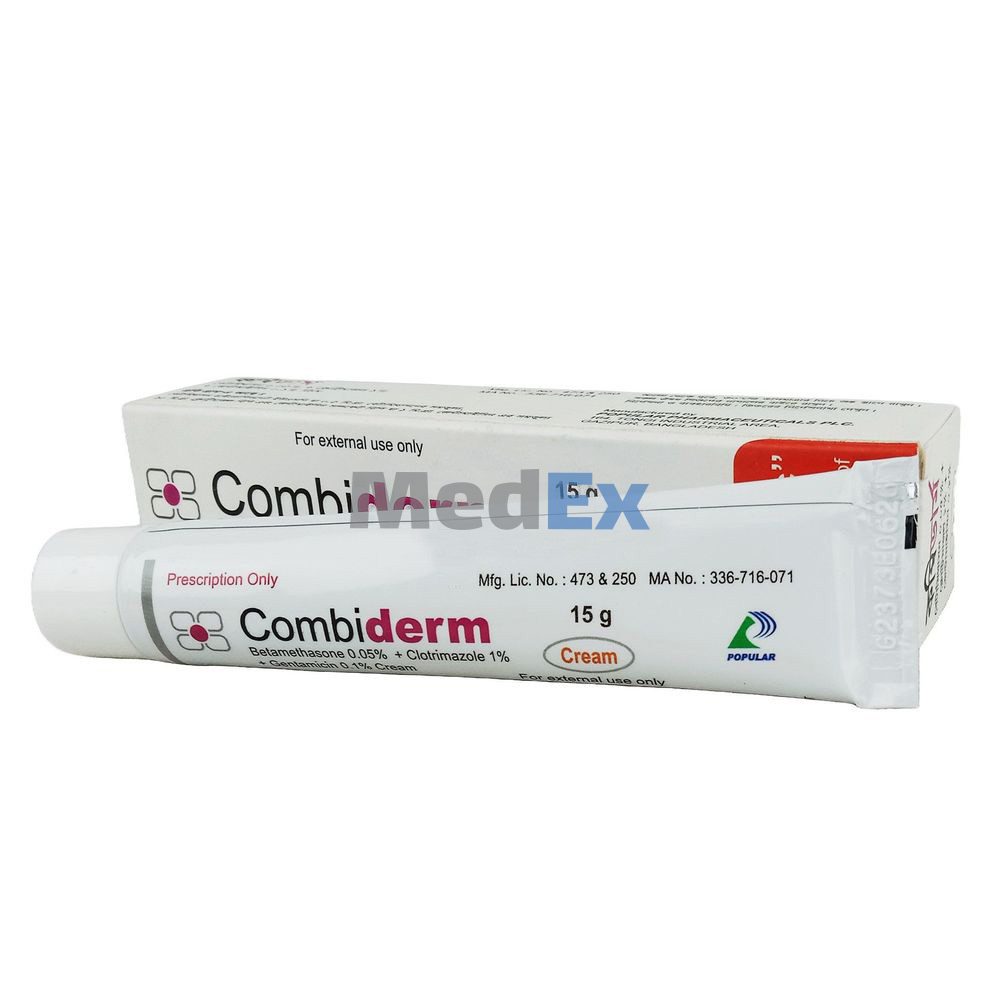 Combiderm cream is indicated for the treatment of corticosteroid-responsive dermatoses when complicated by infections caused by bacteria and fungi. This is also effective in the treatment of tinea pedis, tinea cruris & tinea corporis, acute and chronic eczema.