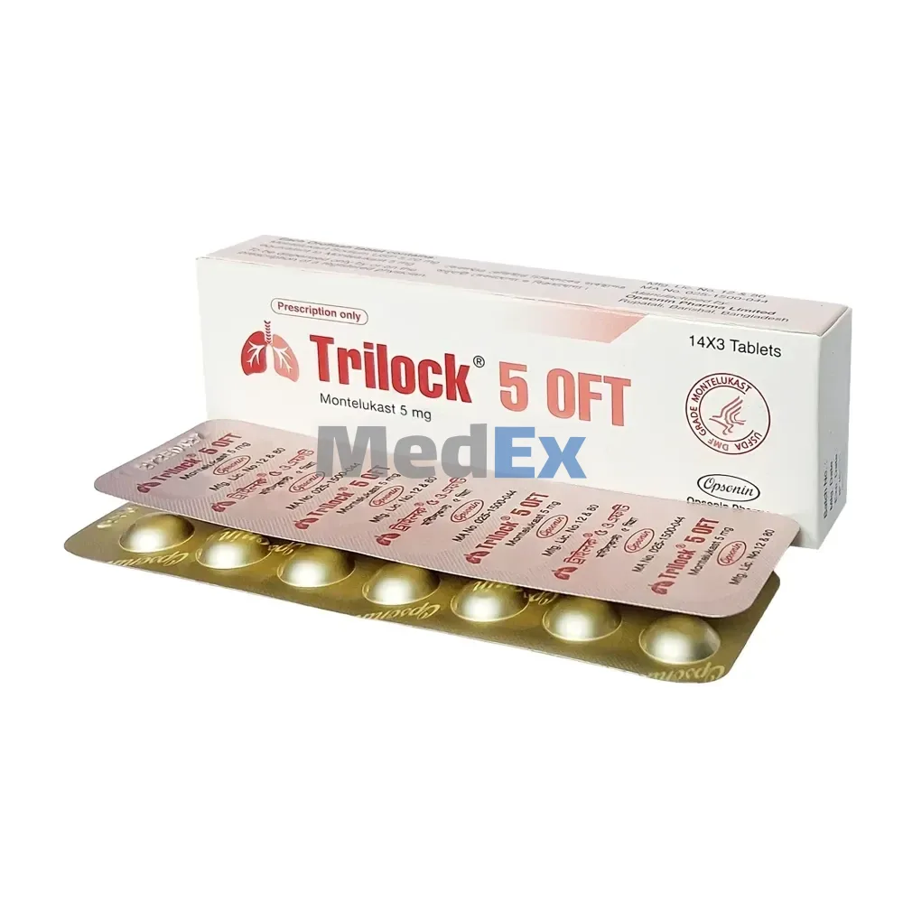 Trilock OFT 5 mg Flash Tablet is commonly used to treat asthma or allergic rhinitis. It helps keep airways open and easy breathing by blocking leukotrienes.