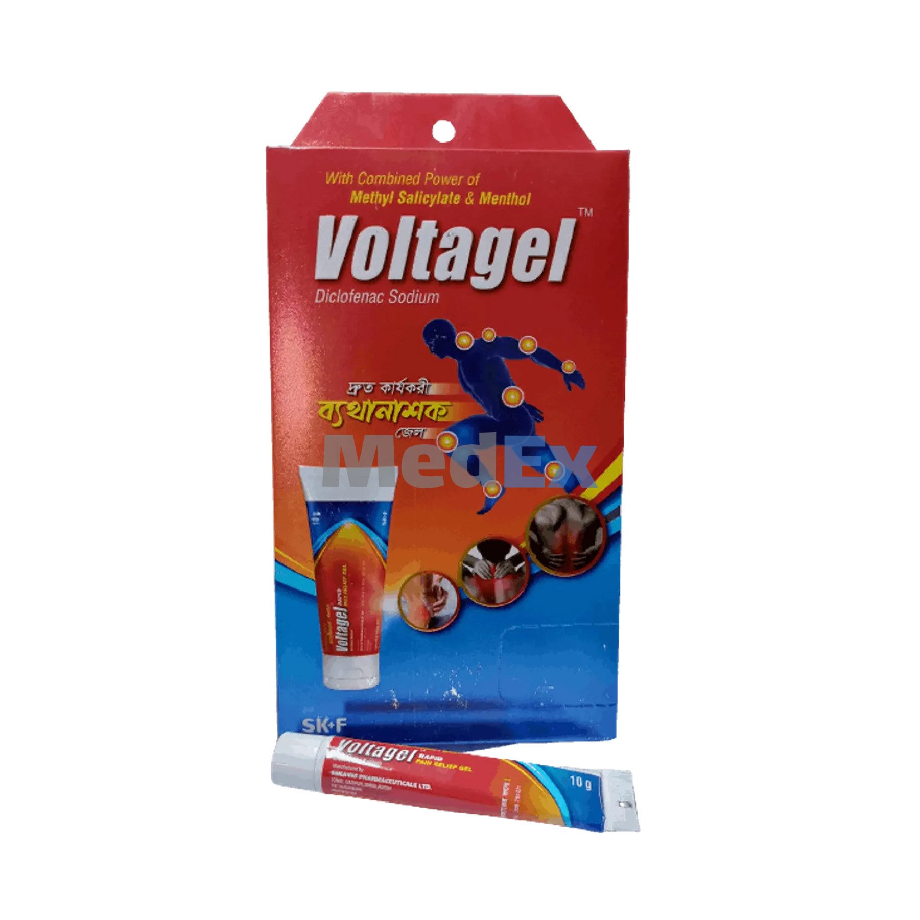 Voltagel is generally well tolerated. Adverse effects are mild, rare and transient. At the starting of the treatment, however, patients may be sometimes complaining of epigastric pain, eructation, nausea and diarrhea or dizziness or headache. These effects are usually mild in nature. Peripheral edema and skin reactions, such as rash and eczema have also been encountered. Voltagel Gel may cause local irritation and reddening of the skin and skin rash.