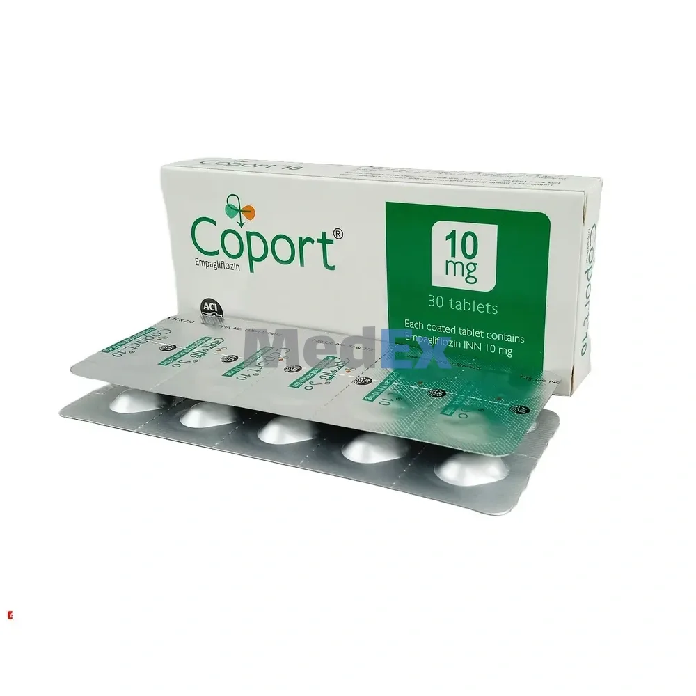 Coport 10 mg Tablet is a SGLT-2 inhibitor which reduces the reabsorption of glucose from kidney.