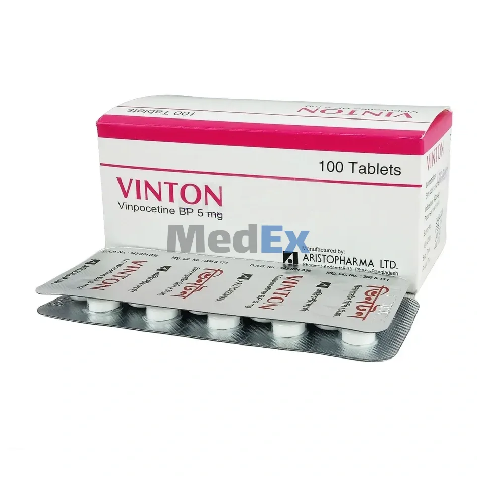 Vinpocetine considerably improves cerebral microcirculation by inhibiting platelet aggregation, reducing the pathologically increased blood viscosity, and increases erythrocyte deformability. It also promotes O2 transport into the tissues by reducing the O2 affinity of erythrocytes.