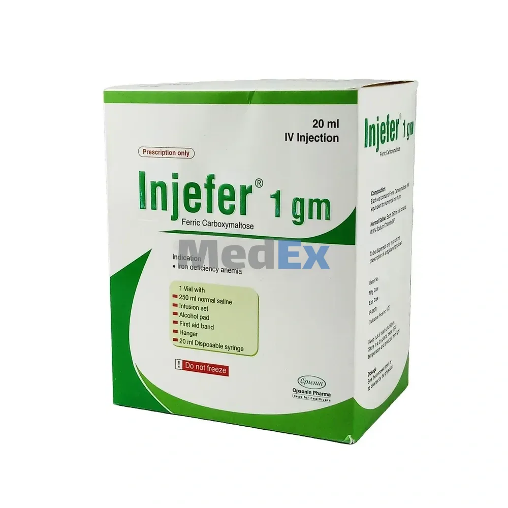 Injefer is a colloidal iron (III) hydroxide in complex with Carboxymaltose, a Carbohydrate polymer that releases iron.