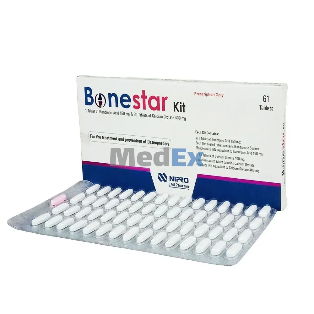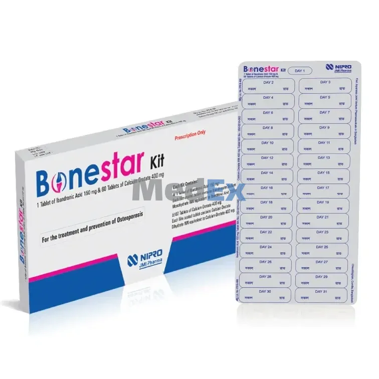 BoneStar Kit is indicated for the treatment and prevention of osteoporosis in women (especially after menopause) & men. It increases bone mineral density (BMD) and reduces the incidence of vertebral fractures.