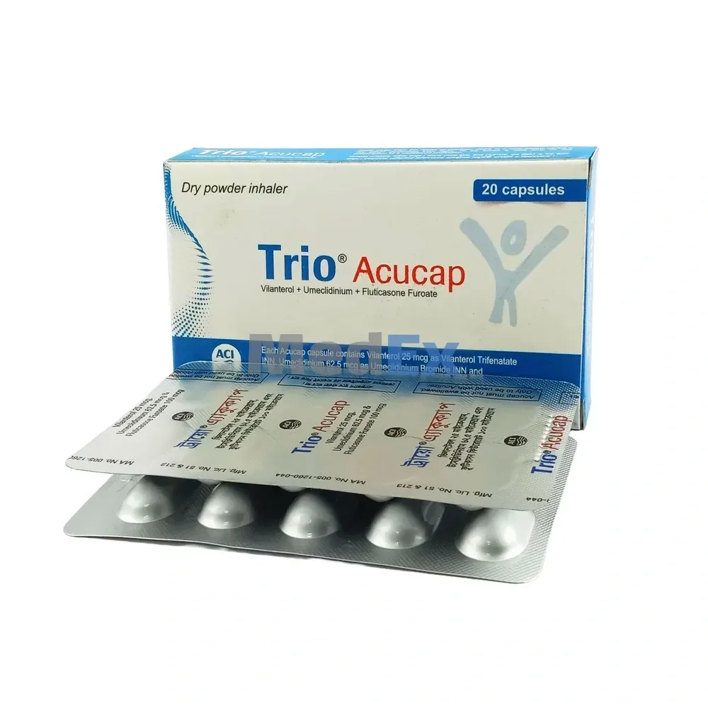 - Vilanterol 25 mcg (as Vilanterol Trifenatate INN), Fluticasone Furoate INN 100 mcg and Umeclidinium 62.5 mcg (as Umeclidinium Bromide INN).