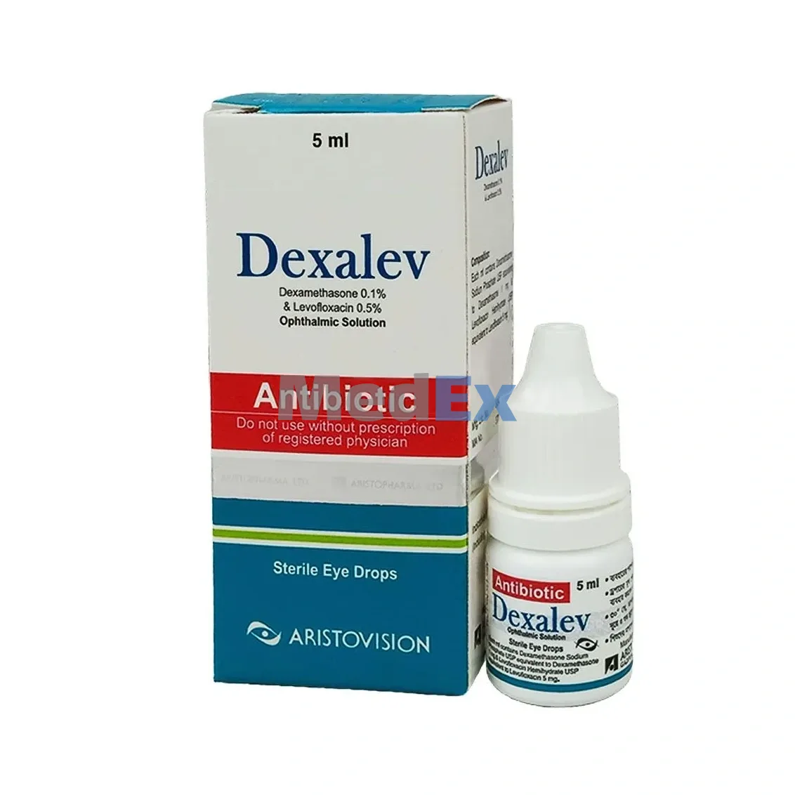 লিভোফ্লক্সাসিন হল একটি সিন্থেটিক তৃতীয় প্রজন্মের ফ্লরোকুইনোেলন, অ্যান্টিব্যাকটেরিয়াল এজেন্ট যা ব্যাকটেরিয়া ডিএনএ গাইরেজ সুপারকয়লিং ক্রিয়াকে বাধা দেয়ার মাধ্যমে ডিএনএ প্রতিলিপিকে বাধা দেয়। লিভোফ্লক্সাসিন হল অফলোক্সাসিনের সক্রিয় এল-আইসোমার যা ব্যাকটেরিয়া টাইপ II টপোআইসোমারেজ-ডিএনএ গাইরেস এবং টপোআইসোমারেজ IV কে বাধা দেয়। লিভোফ্লক্সাসিন গ্রাম-নিগেটিভ ব্যাকটেরিয়াতে ডিএনএ গাইরেজ এবং গ্রাম-পজিটিভ ব্যাকটেরিয়াতে টপোআইসোমারেজ IV কে টার্গেট করে। অন্যদিকে, ডেক্সামিথাসন ফসফেট প্রদাহের ক্ষেত্রে প্রোস্টাগ্লানডিন সংশ্লেষণের প্রথম ধাপে ফসফোলাইপেজ A2 কে বাধা প্রদান করে। ডেক্সামিথাসন ফসফেট প্রদাহের স্থানে নিওট্রোফিল এর কেমোটাক্টিক ইনফিলট্রেশন রোধ করে। এটার প্রদাহবিরোধী ক্রিয়া হাইড্রোকর্টিসন অপেক্ষা ৩০ গুন এবং চিকিৎসাক্ষেত্রে কার্যকারিতা ৮/১০ গুন বেশি। অন্যান্য গ্লুকোকর্টিকোয়েডস এর মত এটা এন্টি এলার্জিক, এন্টি এক্সডেটিভ এবং এন্টি প্রলিফারেটিভ।