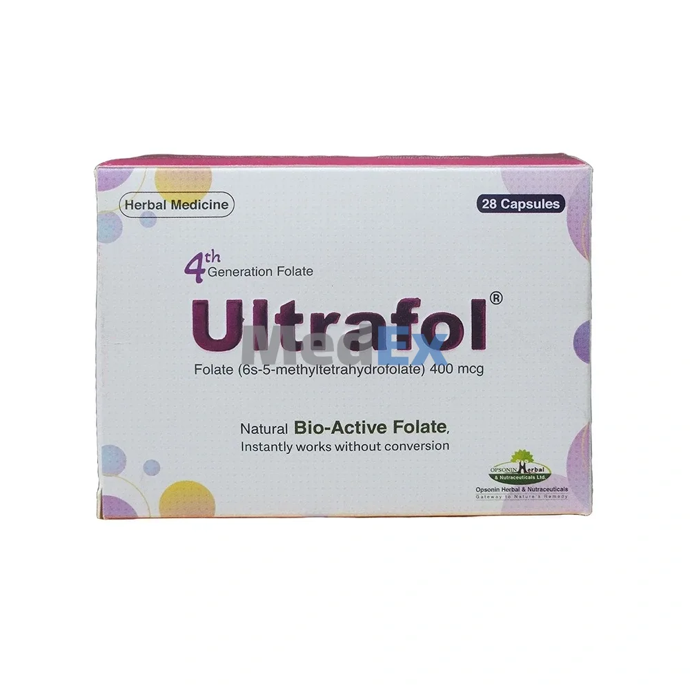 Folate (Ultrafol) may show possible drug interactions. Anticonvulsant action of phenytoin is antagonized by Folic Acid. Folate deficiency may result from increased loss of folate, as in renal dialysis and/or interference with metabolism (e.g., Folic Acid antagonists such as Methotrex- ate); the administration of anticonvulsants, such as diphenylhydantoin, primidone, and barbiturates; alcohol consumption and, especially alcoholic cirrhosis; and the administration of pyrimethamine and, nitrofurantoin. Taking Folate (Ultrafol) along with amiodarone might increase the chances of sunburn, blistering, or rashes on areas of skin exposed to sunlight. Folate (Ultrafol) might increase breaks down of phenobarbital leading to decrease the effectiveness of phenobarbital.