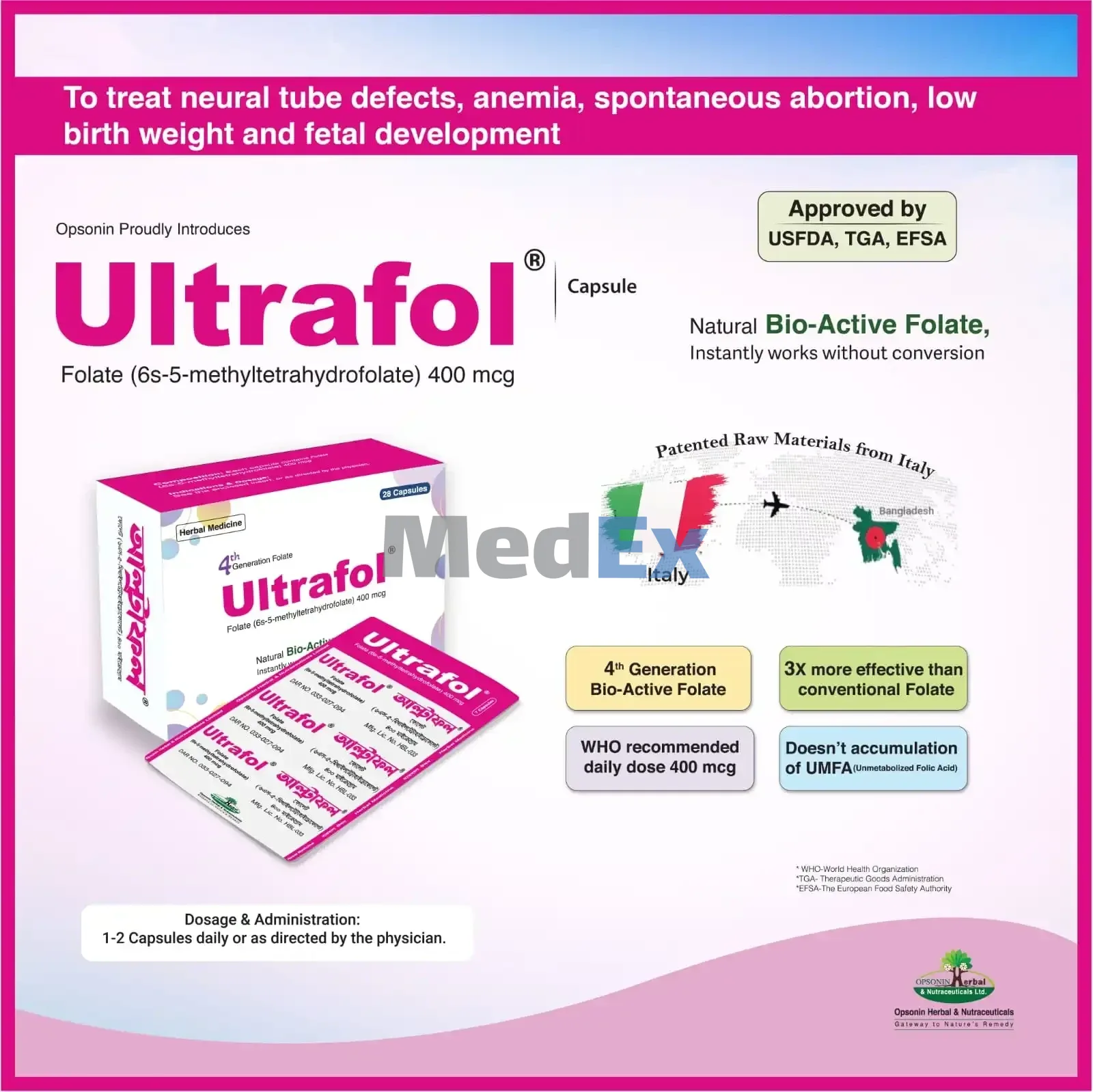 Folate (68-5-methyltetrahydrofolate) is the fourth generation folate derivatives, a new generation of folic acid derivative made up of (6S-5-methyltetrahydrofolate) and glucosamine salt which is readily active and has added advantage of higher bioavailability, safety and stability.