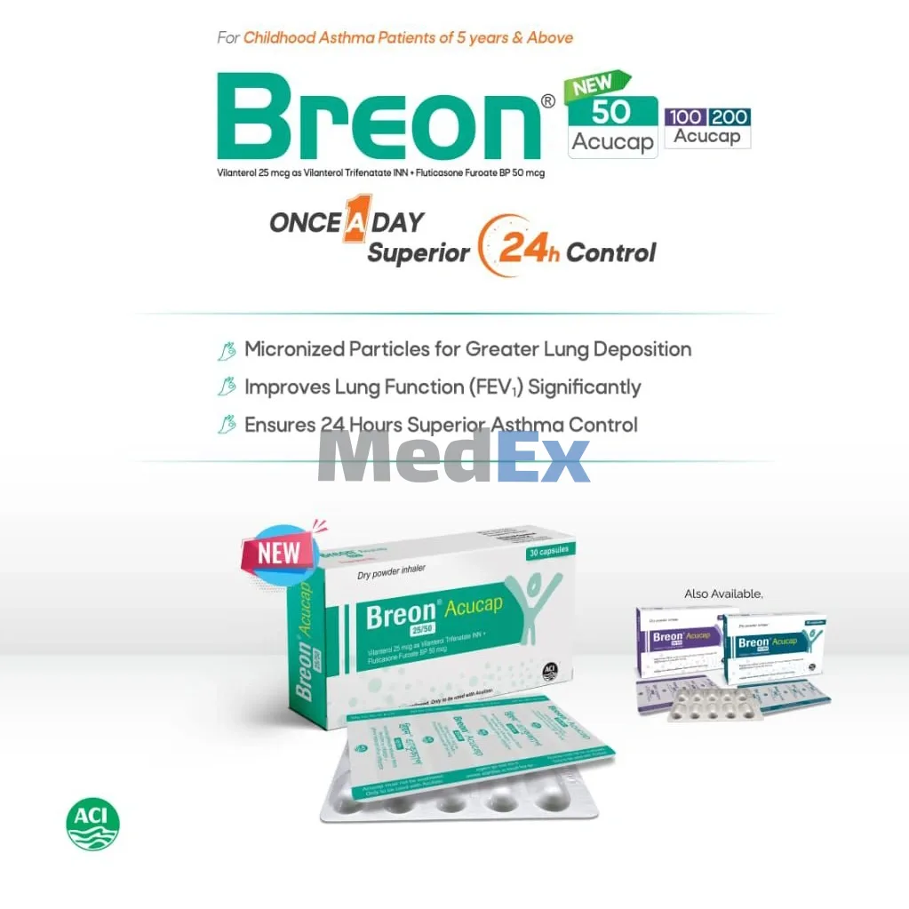 25/50 inhalation capsule: Each dry powder inhaler capsule contains Vilanterol 25 mcg (as Vilanterol Trifenatate INN) & Fluticasone Furoate INN 50 mcg
