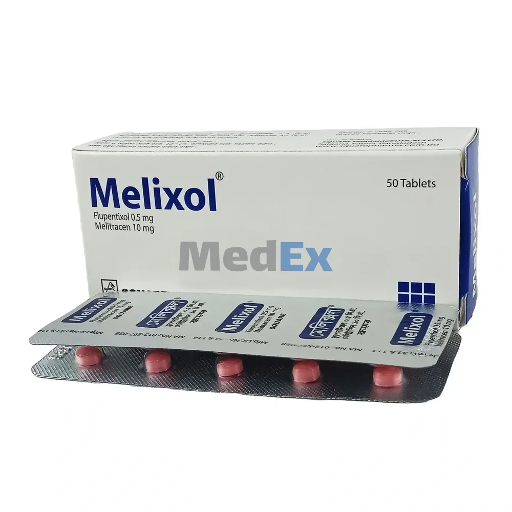 - Melixol 0.5 mg+10 mg Tablet helps treat anxiety and depression.