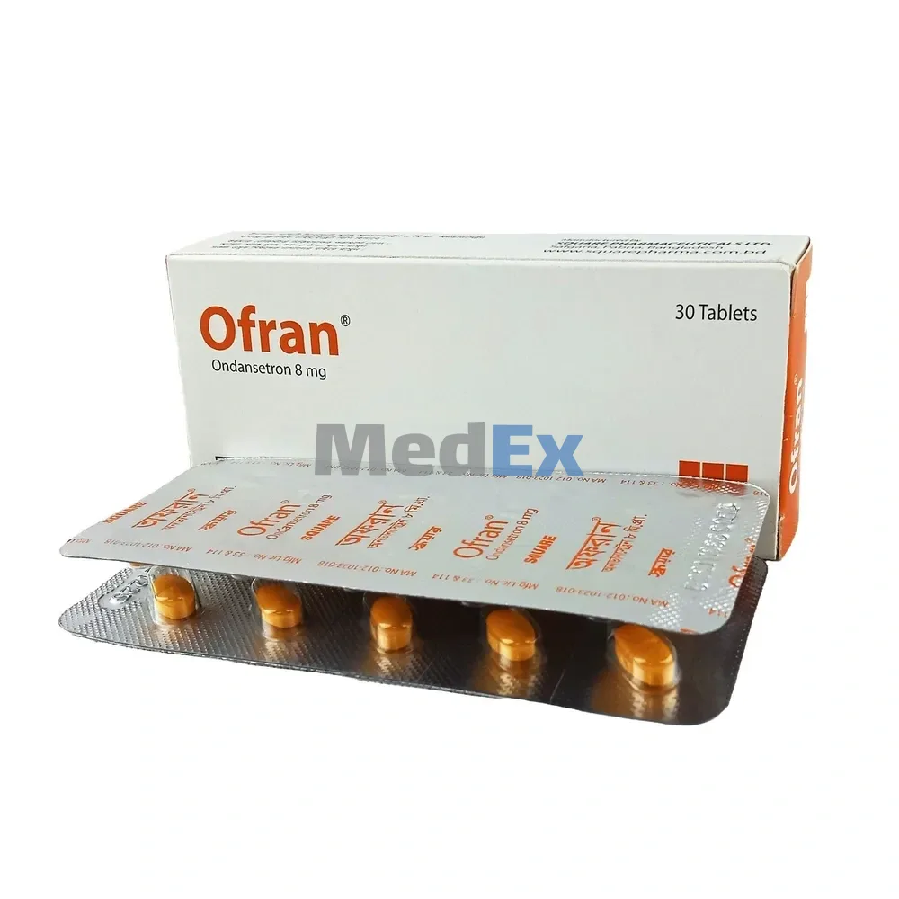 Frequently reported adverse events were headache, constipation and diarrhea, but the majority have been mild or moderate in nature. In chemotherapy-induced nausea and vomiting, rash has occurred in approximately 1% of patients receiving Ofran. There also have been reports to a sensation of flushing or warmth, hiccups and liver enzyme abnormalities. Rare cases of anaphylaxis, brochospasm, tachycardia, angina (chest pain), hypokalemia, shortness of breath have also been reported, except for bronchospasm and anaphylaxis, the relationship to Ofran is unclear. There have been no evidence to extrapyramidal reactions, in rare case oculogyric crisis appearing alone, as well as with other dystonic reactions without definitive clinical evidence. In case of PONV, with the exception of headache, rates of these events were not significantly different in the Ofran and placebo groups.