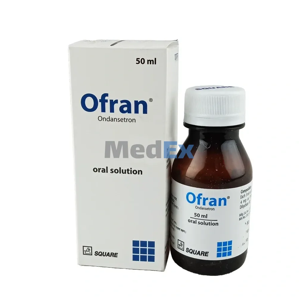 Frequently reported adverse events were headache, constipation and diarrhea, but the majority have been mild or moderate in nature. In chemotherapy-induced nausea and vomiting, rash has occurred in approximately 1% of patients receiving Ofran. There also have been reports to a sensation of flushing or warmth, hiccups and liver enzyme abnormalities. Rare cases of anaphylaxis, brochospasm, tachycardia, angina (chest pain), hypokalemia, shortness of breath have also been reported, except for bronchospasm and anaphylaxis, the relationship to Ofran is unclear. There have been no evidence to extrapyramidal reactions, in rare case oculogyric crisis appearing alone, as well as with other dystonic reactions without definitive clinical evidence. In case of PONV, with the exception of headache, rates of these events were not significantly different in the Ofran and placebo groups.