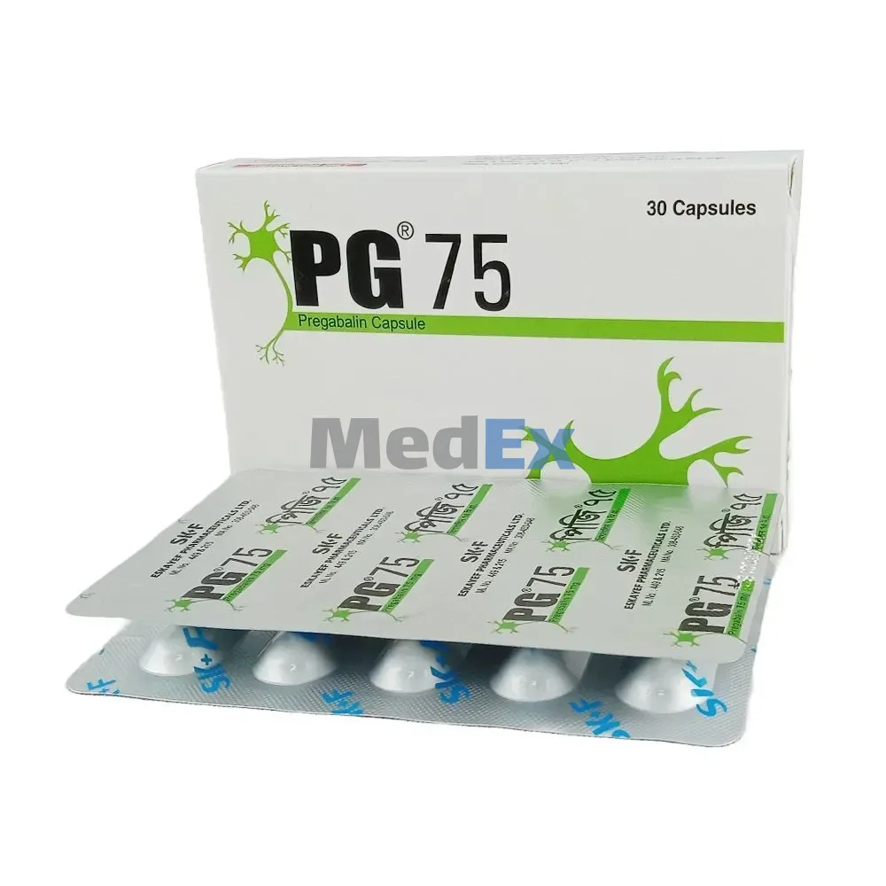 PG 75 mg Capsule is an anticonvulsant and is considered to be the first-line of treatment for neurotic pain, shingles, seizures and fibromyalgia.