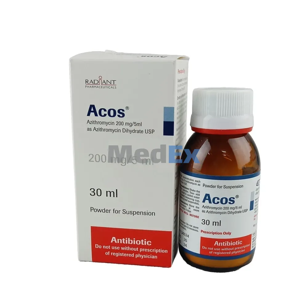 Acos 200 mg/5 ml Syrup is used for the treatment and prevention of community-acquired pneumonia, pharyngitis/tonsillitis, and skin and soft tissue infections.