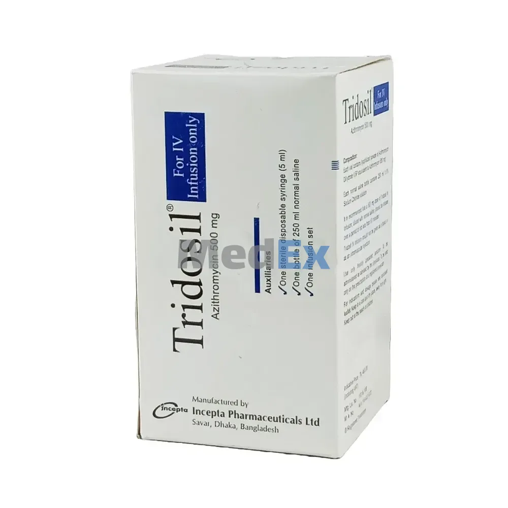 Tridosil 500 mg/vial IV Infusion is used for the treatment and prevention of community-acquired pneumonia, pharyngitis/tonsillitis, and skin and soft tissue infections.