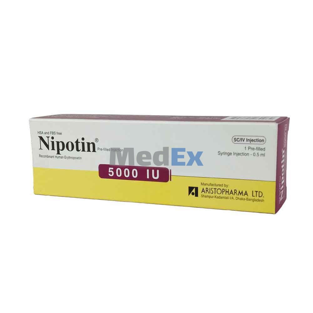 Nipotin is recombinant human erythropoietin (EPO). It is expressed in Chinese hamster ovary cells and has a 165 amino acid sequence identical to that of human urinary EPO; the two are indistinguishable on the basis of functional assays. The apparent molecular weight of erythropoietin is about 30,400 daltons.