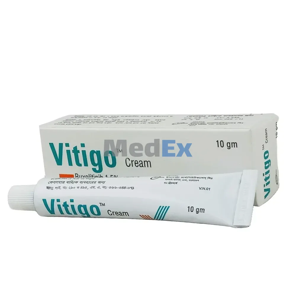 Vitiligo: Vitigo cream is used in the topical treatment of nonsegmental vitiligo in adult and pediatric patients 12 years of age and older.